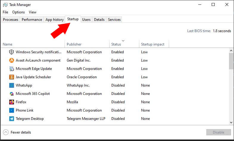 1. Disable Startup Programs for Faster Boot Time